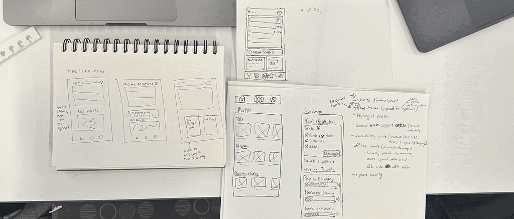 We began our research searching for key information regarding what user pain points were when finding shelter and what they needed. I researched on google scholar, Reddit, and used chatgpt to generate possible key words to find relevant data that backed up the top 5 concerns when it comes to unhoused individuals.